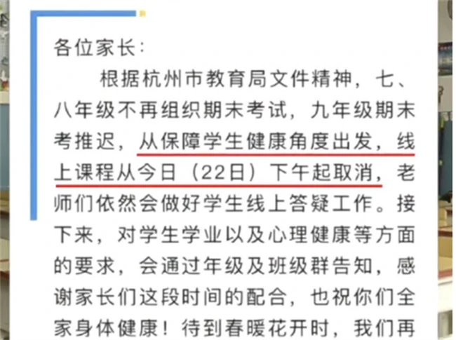 为了放松。杭州教育局在12月22日明确,初一和初二不会进行期末考试,初三年级的期末考试就会逐渐推移到下学期。在这一天的下午学校就选择暂时停止网课,还说读书并不是为了考试,只是为了造福他人,是为了完成自己的理想。