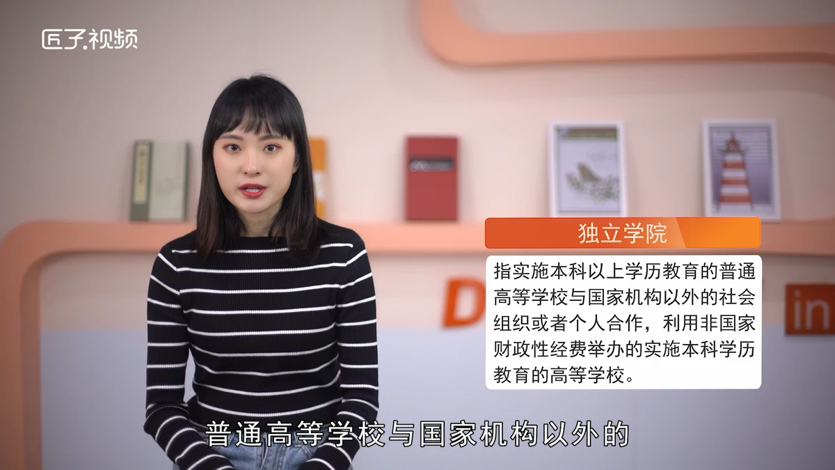 2.独立学院:是指实施本科以上学历教育的普通高等学校与国家机构以外的社会组织或者个人合作,利用非国家财政性经费举办的实施本科学历教育的高等学校。是与大学独立的学院,但保留其合作办学的大学名称,如:济南大学泉城学院、苏州大学文正学院、上海师范大学天华学院。