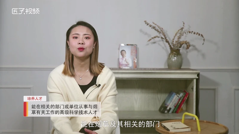 烟草专业培养具备烟草生产、烟草遗传育种以及烟叶质量检测与经营管理等方面的基本理论、基本知识和基本技能,能在烟草及其相关的部门或单位从事与烟草有关的技术与设计、推广与开发、经营与管理、教学与科研等工作的高级科学技术人才。