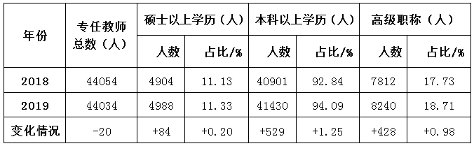 2018年和2019年全省中等职业学校教师队伍建设情况对比