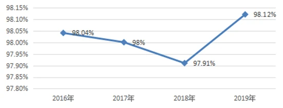 2016-2019年全省中等职业学校毕业生就业率