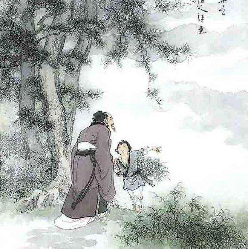 在山林中的一棵松树下,我向隐者的小弟子询问他师父的去向。他回答说师父采药材去了。隐者师父其实就在这座旷远的大山里。但是山上云雾迷蒙,那个小弟子也不知道他师父到底在什么地方了