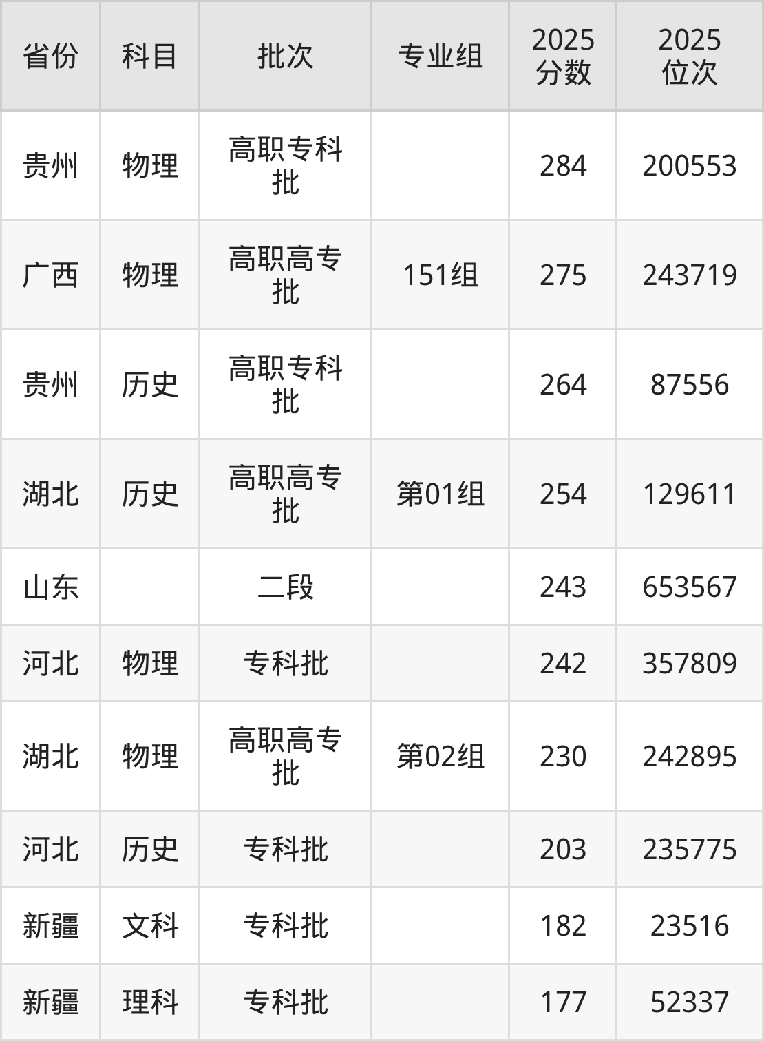 2025年云南外事外语职业学院全国录取分数线177分到284分,录取最高在贵州(物理)、录取最低在新疆(理科)。