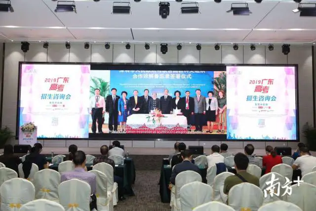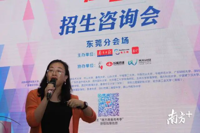 “高招会”现场,深圳大学、南方科技大学、哈尔滨工业大学(深圳)、东莞理工学院的老师分别详解各高校往届录取数据、高校特色、专业特点及2019年本科招生政策。此外,现场还有2位高报专家。