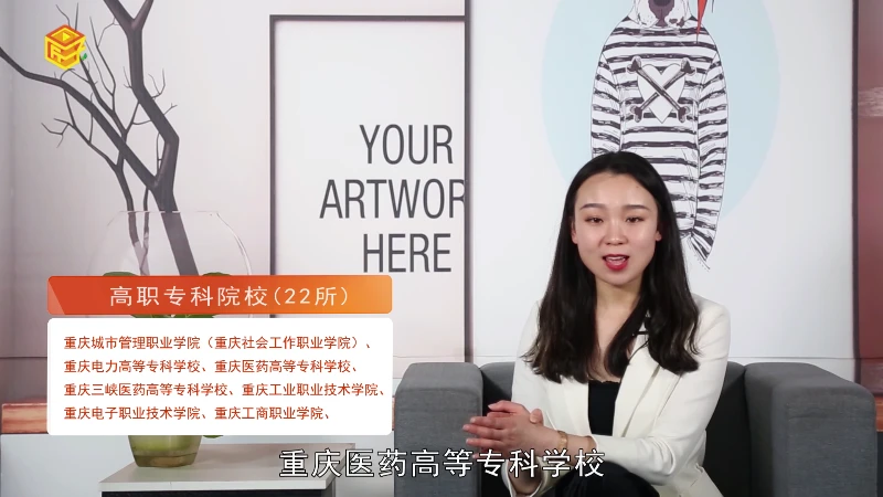 高职专科院校(22所):重庆城市管理职业学院(重庆社会工作职业学院)、重庆电力高等专科学校、重庆医药高等专科学校、重庆三峡医药高等专科学校、重庆工业职业技术学院、重庆电子职业技术学院、重庆工商职业学院、重庆机电职业技术学院、重庆正大软件职业技术学院、重庆电子科技职业学院、重庆城市职业学院、重庆民生职业技术学院、重庆水利电力职业技术学院、重庆三峡职业学院、重庆光彩职业技术学院、重庆警官职业学院、涪陵职业技术学院、重庆信息技术职业学院、重庆海联职业技术学院、重庆巴渝职业技术学院、重庆工程职业技术学院、重庆职业技术学院。