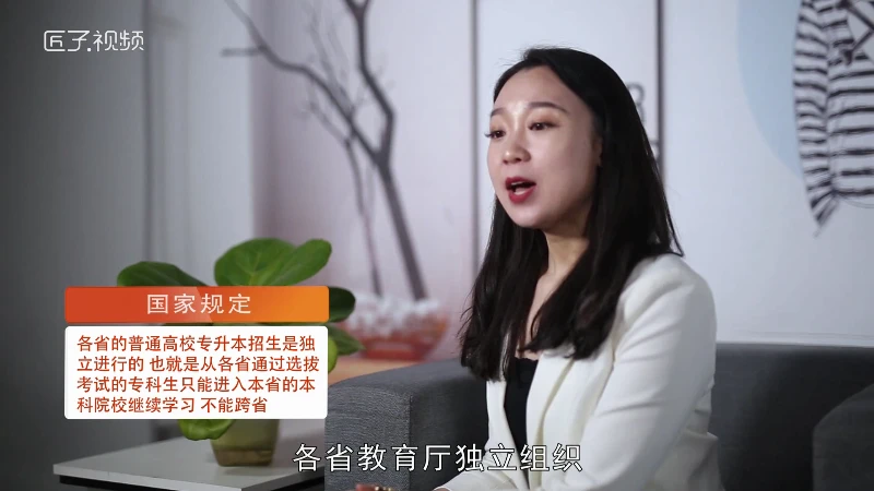 国家每年会选拔一部分大专(高职)的优秀毕业生进入本科院校继续深造,称为普通高校专升本,选拔形式是教育部授权各省教育厅独立组织,通过全省统一招生考试进行选拔,考上的专科生进入本科院校继续2年的全日制学习,国家规定,各省的普通高校专升本招生是独立进行的,也就是从各省通过选拔考试的专科生只能进入本省的本科院校继续学习,不能跨省。